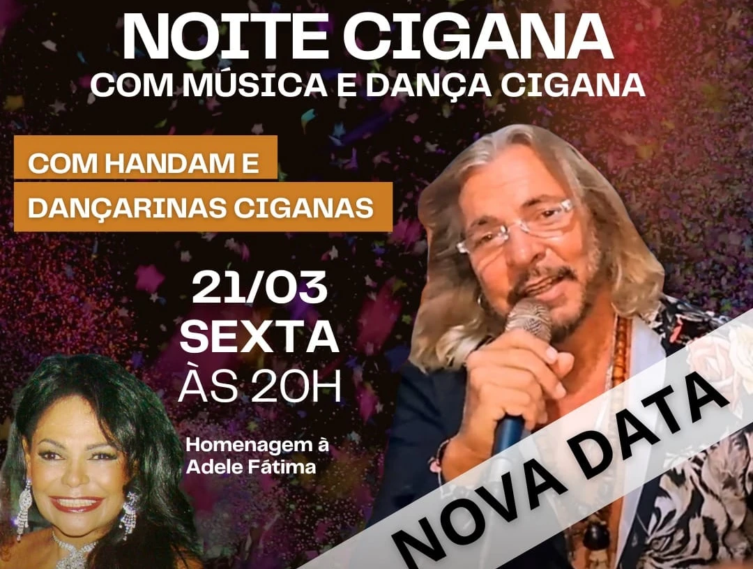 A musa dos carnavais Adele Fátima será homenageada em uma apresentação especial do cantor, compositor e músico cigano HANDAM, na próxima sexta-feira, 21 de março de 2025, a partir das 20h, no Piano Bar Vinicius de Moraes, anexo ao Hotel Vila Galé, no Centro do Rio de Janeiro. O show, intitulado “Noite Cigana”, é uma celebração da música e da cultura cigana, com produção do jornalista e produtor cultural João Luiz Azevedo.