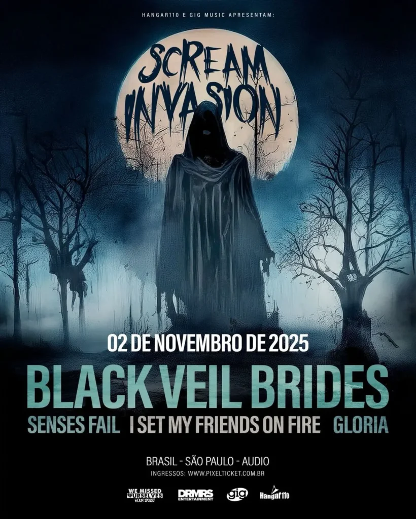 Já neste sábado, 2 de novembro, os fãs de som pesado têm encontro marcado na Audio, em São Paulo. O festival Scream Invasion, realizado pela Gig Music e o lendário Hangar 110, promete uma maratona de guitarras afiadas e vocais intensos a partir das 16h.