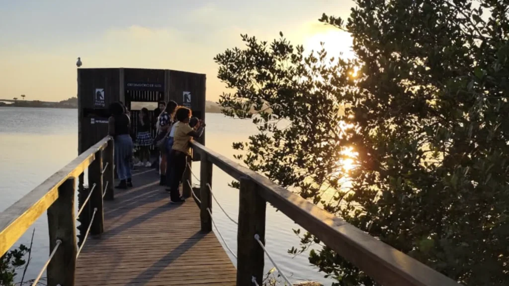Instalado às margens da Laguna de Araruama, o Centro de Visitação do Projeto Albatroz foi concebido como uma experiência imersiva em cultura oceânica e biodiversidade marinha. O percurso inclui a Trilha do Mangue, ecossistema costeiro associado à Mata Atlântica, a Calçada dos Ecossistemas — que apresenta desde o manguezal até o ambiente pelágico —, um observatório de aves sobre a lagoa e espaços expositivos dedicados ao oceano e às aves marinhas. A proposta dialoga com públicos diversos, de estudantes e educadores a pescadores, turistas e moradores locais.