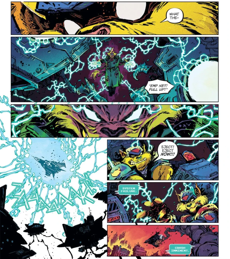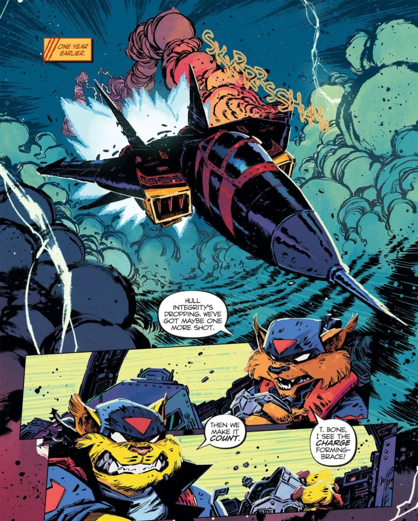A arte interna é assinada por Jorge Corona, que entrega uma visão mais sombria e energética do mundo dos Swat Kats.
