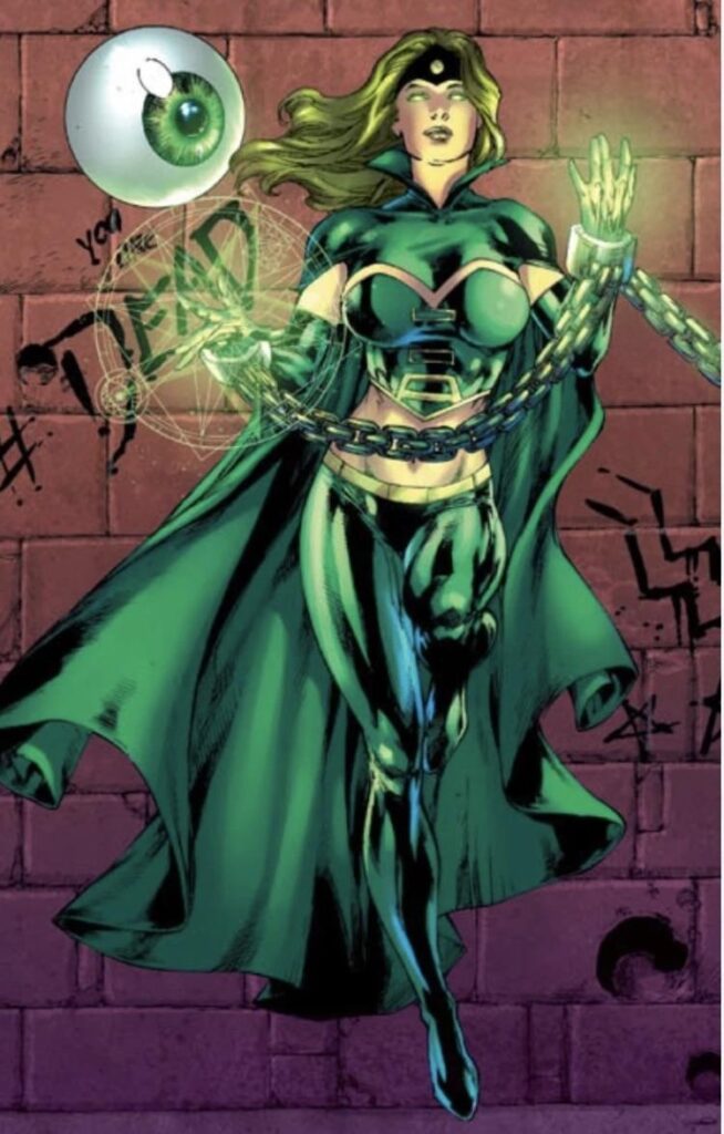 Sua maior arma é o Olho Esmeralda de Ekron, artefato místico capaz de disparar rajadas de energia, permitir voo, sobrevivência no espaço e ataques mentais devastadores. Embora não possua habilidades físicas sobre-humanas, o Olho a transforma em uma ameaça de escala universal.