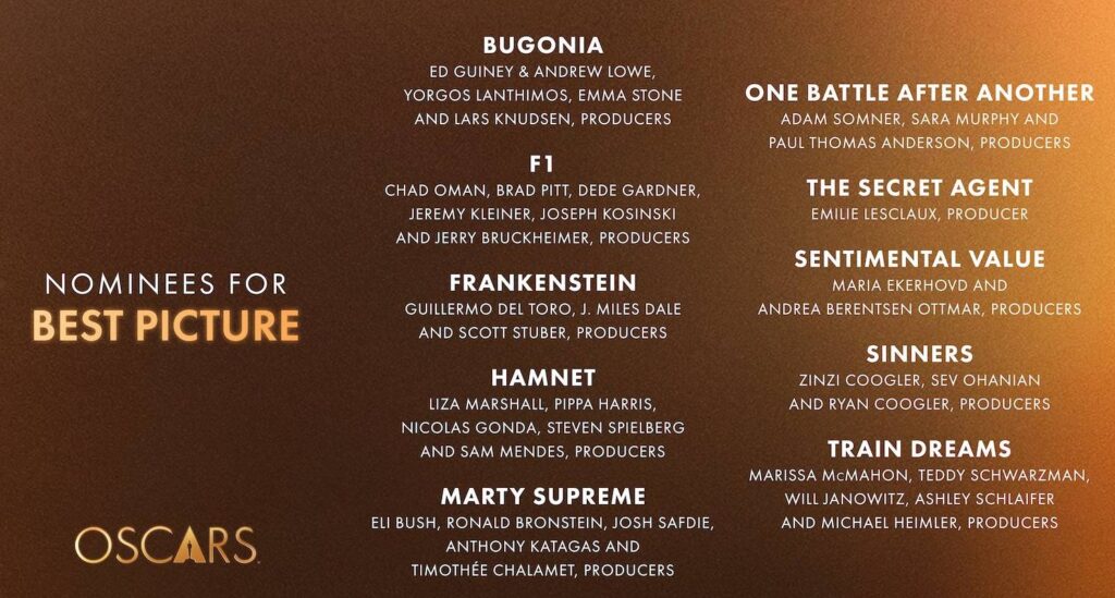 Do lado brasileiro, O Agente Secreto saiu fortalecido do anúncio ao garantir quatro indicações importantes: Melhor Filme, Melhor Filme Internacional, Melhor Elenco e Melhor Ator, com Wagner Moura. O resultado iguala o feito histórico de Cidade de Deus em 2004 e marca um dos momentos mais relevantes do cinema nacional na história recente do Oscar, ampliando a visibilidade internacional da produção dirigida por Kleber Mendonça Filho.