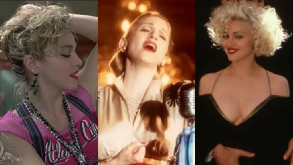 Madonna em “Procura-se Susan Desesperadamente” (1985), “Evita” (1996) e “Dick Tracy” (1990) • Metro-Goldwyn-Mayer Studios Inc.// Cinergi Pictures Entertainment, Inc.// Touchstone Pictures Inc.