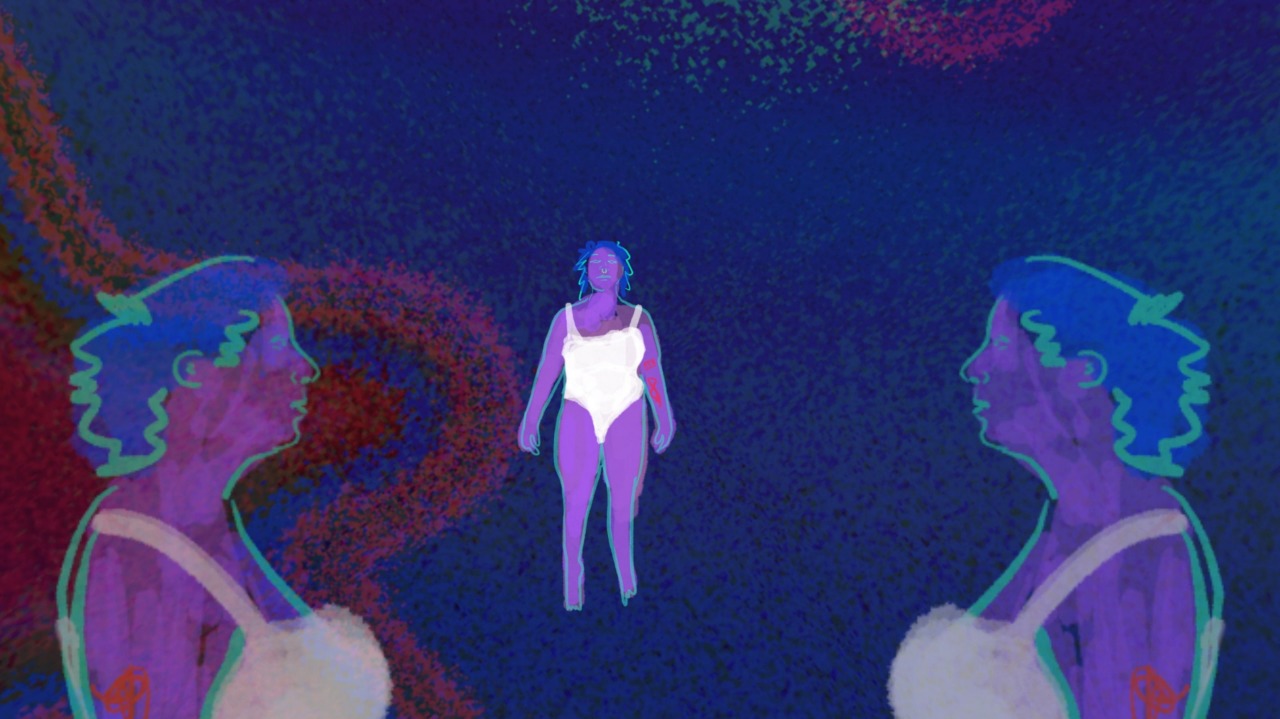 “É uma animação que conta a história de uma personagem mergulhando em seus pensamentos e descobrindo um mundo de cores, possibilidades e desejos. A narrativa começa numa introspecção que floresce em uma crescente constante.”