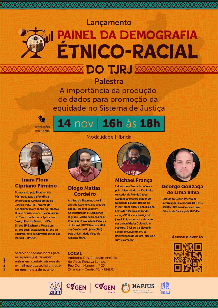 Evento: Lançamento do Painel da Demografia Étnico-Racial do TJRJ e palestra “A importância da produção de dados para promoção da equidade no Sistema de Justiça”